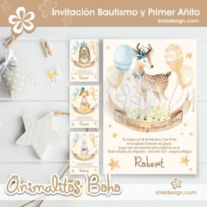 Animalitos Boho: Invitación para Bautismo y Primer Añito