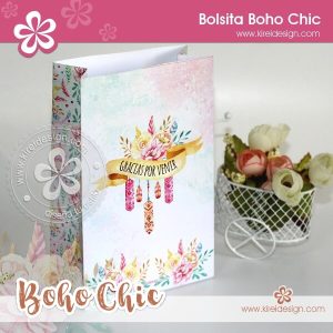 Bolsita imprimible Mod. Boho Chic. El archivo PDF contiene una bolsita para imprimir en hoja tamaño A4. Las medidas una vez armadas son de 14,5 x 9,5 x 4,5cm (alto-ancho-profundidad)
