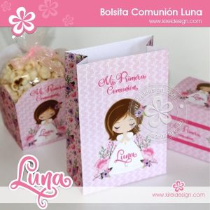 Para regalar una sorpresa o entregar golosinas a tus invitados, esta bolsita imprimible corresponde al Modelo LUNA.