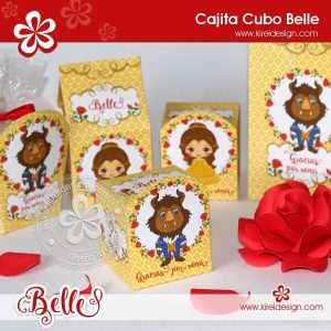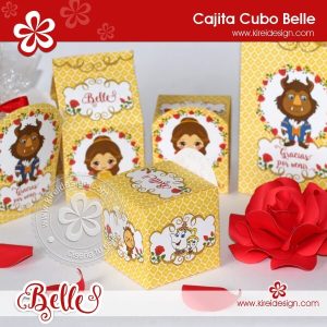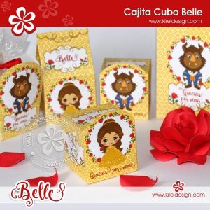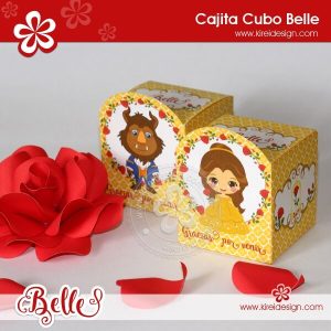 Esta Cajita cubo para imprimir Modelo BELLE es ideal para entregar recuerditos o bombones a tus invitados. Tienes 2 modelos disponibles: la cajita con Belle y la cajita con la Bestia.