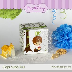Cajita en forma de cubo, una vez armada mide 6 cm de alto, ancho y profundidad.