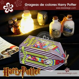 Cajita de grageas de sabores para imprimir Modelo HARRY POTTER es ideal para entregar caramelos a tus invitados.