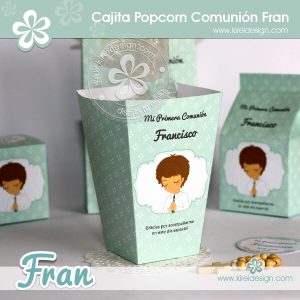 Cajita imprimible para colocar Popcorn o golosinas, ideal para armar el candy bar, pertenece a la colección «FRAN«