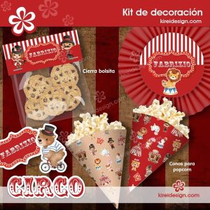 Kit de decoración temática Circo, contiene todos los elementos para armar una fiesta genial, llena de color y personajes adorables!!!.