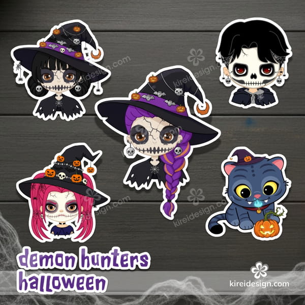 Si te encanta lo adorable con un toque oscuro, este pack es para ti. Los cliparts de las guerreras Kpop (Demon Hunters) estilo chibi llegan para celebrar Halloween con una mezcla de ternura y misterio. Cada personaje fue ilustrado con detalles encantadores: expresiones dulces, atuendos inspirados en cazadores de demonios que combina a la perfección con la temporada spooky.
