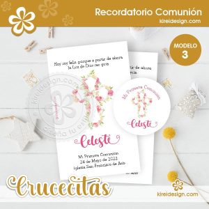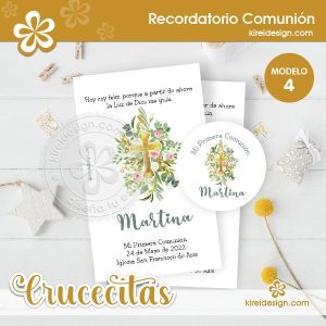 Recordatorios + tags circulares para Primera Comunión Modelo Crucecitas para imprimir en formato PDF. El archivo contiene en total 4 tarjetitas y está configurado para imprimir en hoja tamaño A4 cuantas veces quieras.