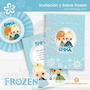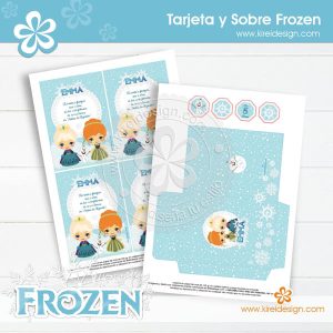 Invitación para cumpleaños, baby shower o nacimiento Modelo Frozen para imprimir de 9×13 cm, en formato PDF.