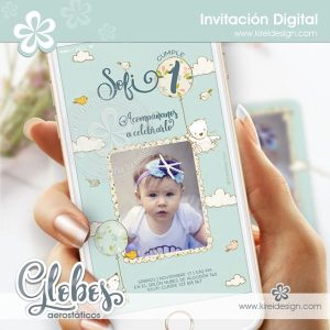 Invitación Virtual para Cumpleaños, pertenece a la colección Globos Aerostáticos, sorprende a tus invitados vía WhatsApp, Facebook o por email.