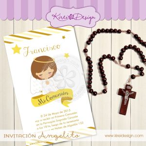 Un dulce angelito te acompañará en tu comunión. Este modelo también puede ser usado también para bautismo y nacimiento.