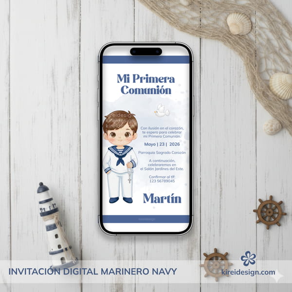 • invitacion digital Comunión Niño – Marinero Navy