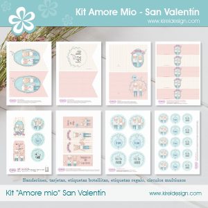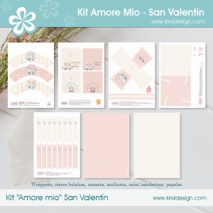 Kit imprimible decorativo para festejar San Valentín, en formato PDF y configurado para imprimir en hojas tamaño A4. No es editable ni personalizable, está listo para comenzar a imprimir.