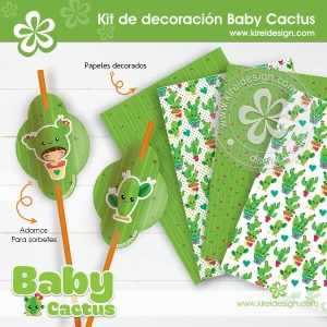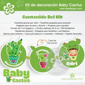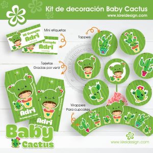 Kit imprimible decorativo Baby Cactus, puedes usarlo para diversos eventos como cumpleaños, baby shower, nacimiento, bautizo, etc. La invitación y el resto de complementos de esta colección puedes verlos AQUI