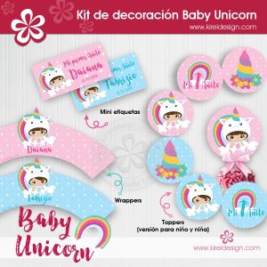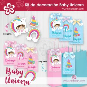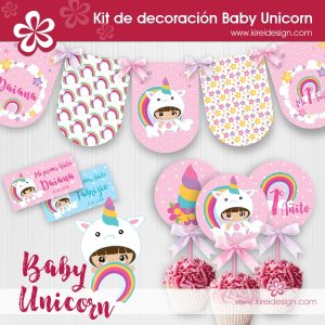 Kit imprimible de decoración modelo BABY UNICORN, para que tu fiesta esté llena de ternura, magia y color!.