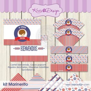 Kit Marinerito imprimible para decoración de comunión. El niño es tal cual se muestra en las imágenes, sólo se agrega el nombre y la fecha.