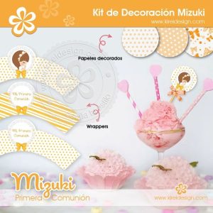 El kit Decorativo Mizuki para comunión. Los archivos no son editables, se encuentran en formato PDF, tamaño A4 y son aptos para impresoras hogareñas (tipo inkjet) y láser. Para conocer más acerca de los imprimibles y características visita la sección de Preguntas Frecuentes