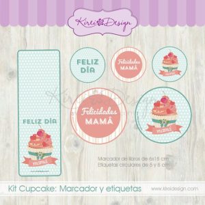 Kit imprimible para agasajar a las madres en su día, el motivo principal son los cupcakes, elaborado en tonos rosados y verdes.