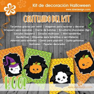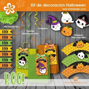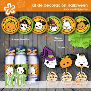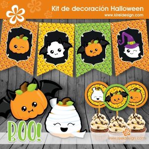 Kit imprimible decorativo de Halloween con simpáticas calabazas y fantasmas, para que tu fiesta sea la más divertida!