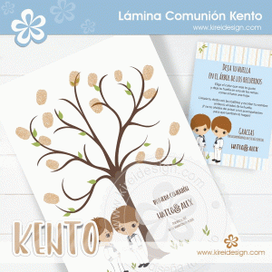 Lámina con árbol de huellas para hermanitos que celebran su primera comunión, tus invitados pueden dejar de recuerdo su huella como si fuesen hojas en el árbol.