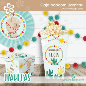 Cajita imprimible para colocar Popcorn o golosinas y para armar un candy bar lleno de llamitas.