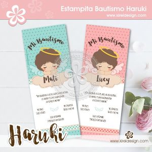 Un dulce angelito acompañará a tu bebé en sus primeros momentos y festejos… Marcapágina Haruki para Bautismo, también puedes usarla como invitación o Recordatorio para otros eventos como nacimiento, primer añito o baby shower. Escribe en la sección NOTAS cual eliges: verde o rosa