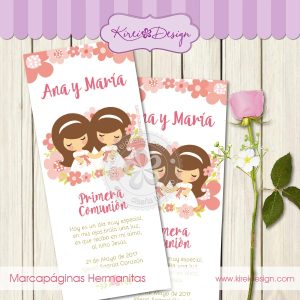Marcapáginas de Primera Comunión para hermanitas, flores y bendiciones para un día muy especial.
