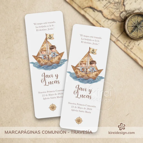 Este marcapáginas de la colección Travesía es un detalle práctico y emotivo, perfecto para regalar a los invitados como recuerdo de la comunión.