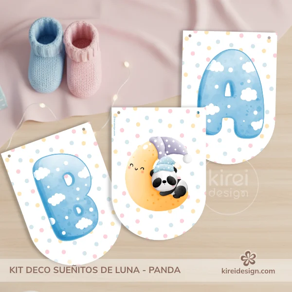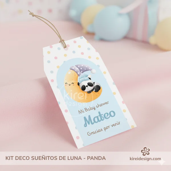 Celebra un Baby Shower dulce y armonioso con el Mini Kit de Decoración “Sueñitos de Luna – Panda Niño”. Un diseño tierno con un panda durmiendo sobre la luna, pensado para decorar la mesa y los pequeños detalles de forma fácil, bonita y coordinada.