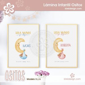 Láminas con adorables ositos para recordar el nacimiento de tu bebé. Estas láminas imprimibles son ideales para decorar y darle una toque de ternura a la habitación de tu peque.