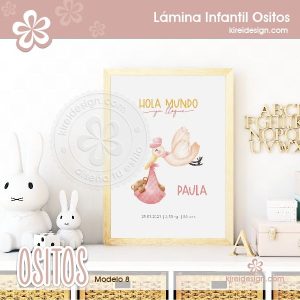 Incluyen el nombre, el peso y medida del bebé, asi que debes dejar esa info en la sección de notas. Son 8 modelos, 4 de niñas y 4 de niños, no te olvides de decirnos que modelo quieres!!!
