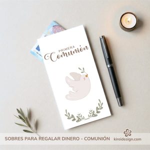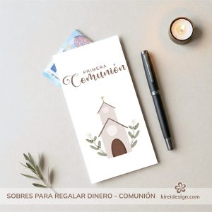 – 2 sobres para dinero (diseño capilla + diseño paloma)