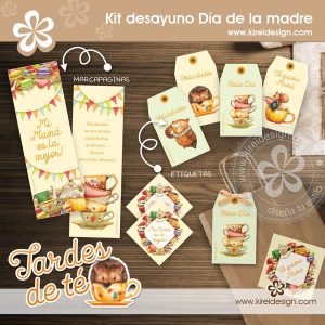 Kit imprimible para desayunos o meriendas sorpresa, es perfecto para sorprender a Mamá en su día.